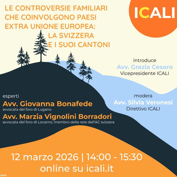 12.03.2026 – evento online – le controversie familiari che coinvolgono paesi extra Unione Europea: la Svizzera e i suoi Cantoni